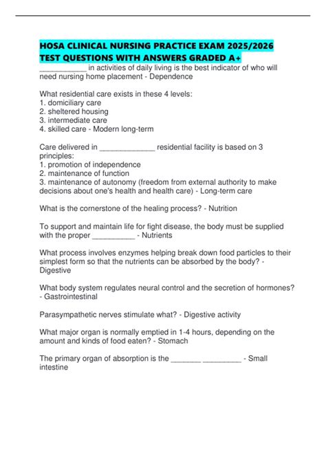 Read Online Hosa-clinical-nursing-practice-test Doc ManyBooks